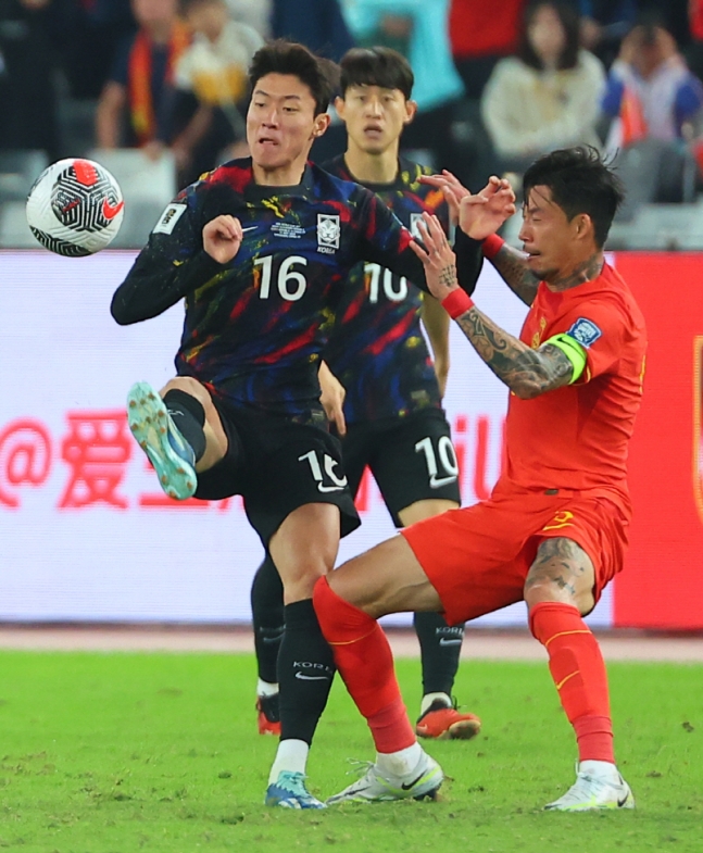 황의조는 21일 중국 선전 유니버시아드 스포츠 센터에서 열린 2026 국제축구연맹 아시아지역 2차예선 조별리그 C조 2차전 중국과 맞대결에 출전했습니다.