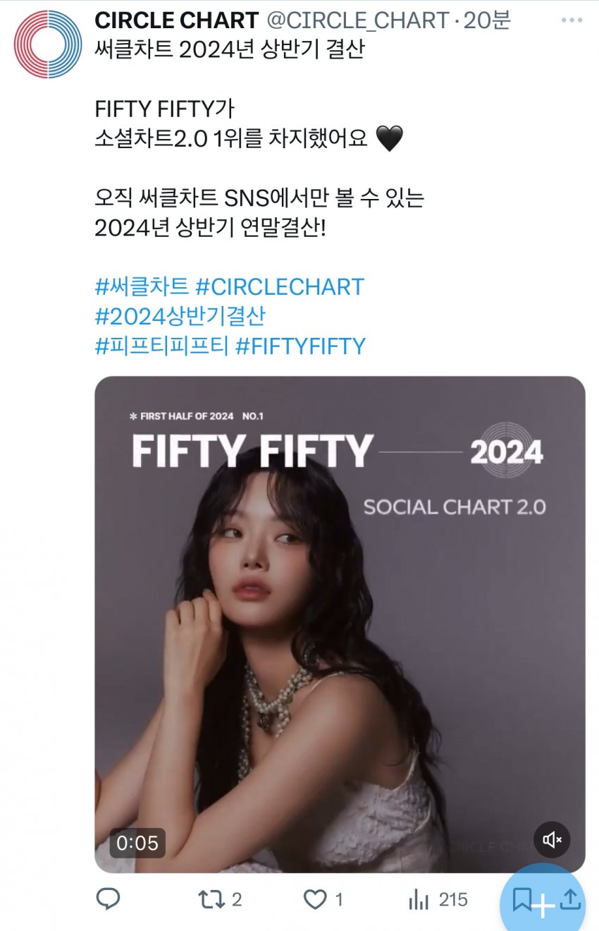 피프티피프티는 상반기 소셜차트 2.0에서 월간 소셜부문 4회 정상을 차지한 바 있는 피프티피프티가 뉴진스, 방탄소년단, 정국, 블랙핑크, 최유리, 에스파, 트와이스, 르세라핌, (여자)아이들 등의 경쟁자들을 누르고 1위를 차지했습니다.