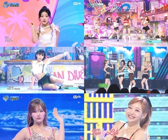 키스오브라이프는 청량하면서도 중독적인 멜로디에 맞춰 안정적인 라이브와 에너제틱한 퍼포먼스로 자신들만의 건강미를 표현했습니다.