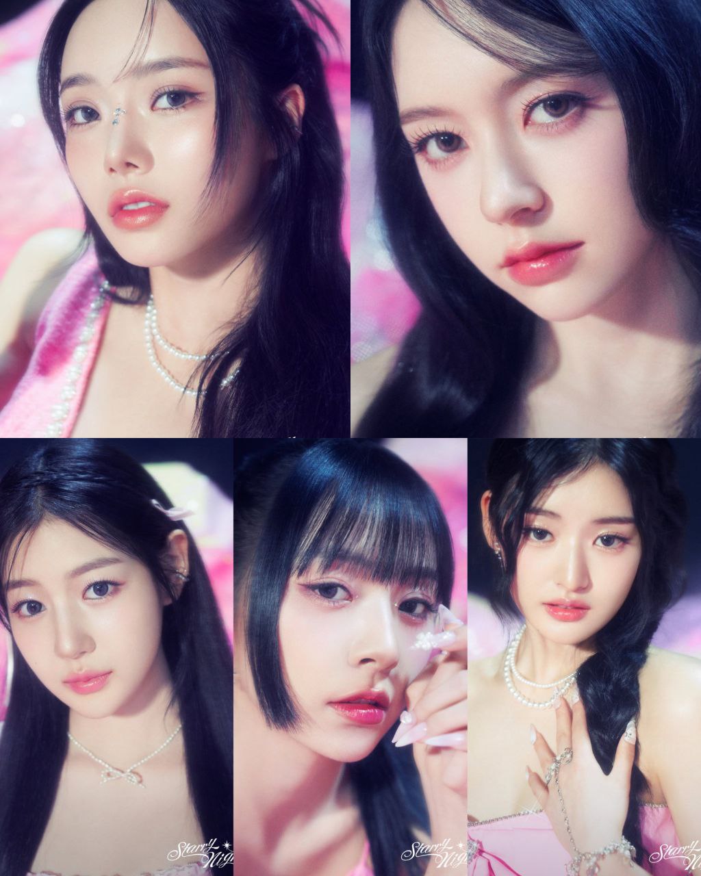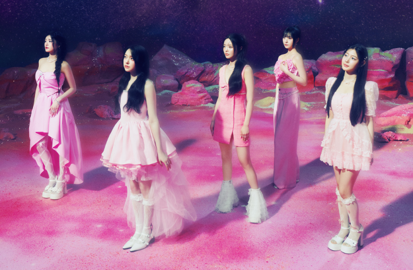 컨셉 포토는 '스태리 나이트'에 맞춘 것으로 보이며, 흡사 핑크 드레스를 입은 다섯 명의 공주처럼 느껴집니다.
