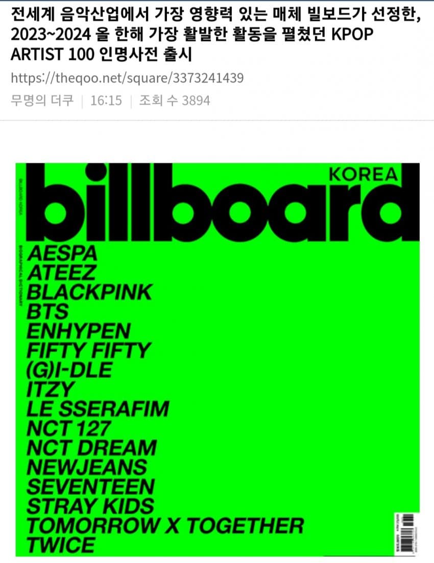 한편 피프티피프티는 빌보드 코리아의 'K팝 인명사전' 오른 16팀에 포함됐습니다.