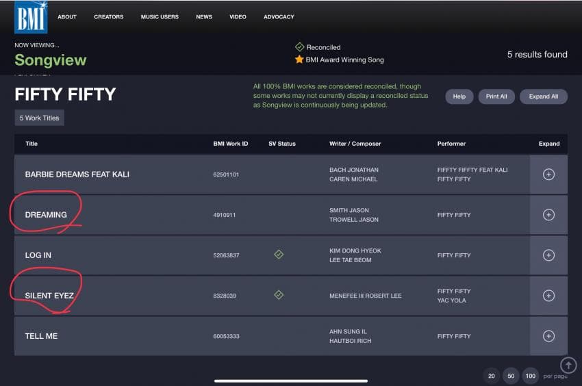 두 곡은 미국 저작권 단체 BMI에 등록된 바 있습니다.