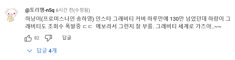 실제로 송하영 팬들이 '그래비티' 노래가 궁금해서 그래비티 스페셜 클립을 찾는다는 댓글이 이어지고 있습니다.