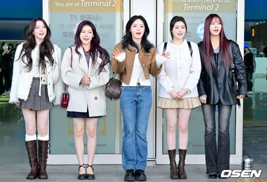 다섯 멤버들은 8일 일본 출국에 인천공항에서 처음으로 완전체의 공항 패션을 선보였습니다.