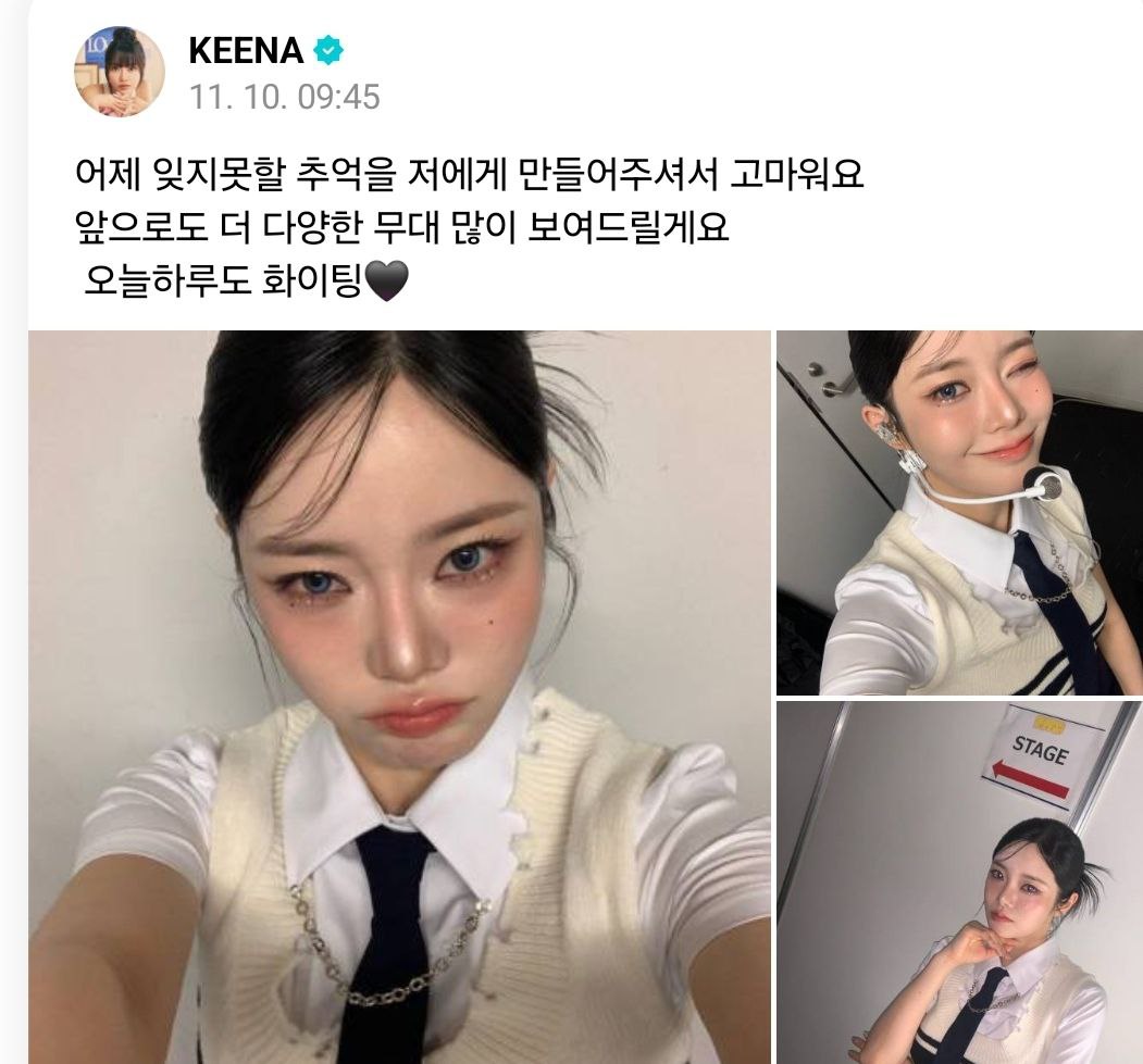 키나(Keena)는 공연이 끝난 후 10일 위버스 커뮤니티에도 "어제(9일) 잊지못할 추억을 저에게 만들어주셔서 고마워요. 앞으로도 더 다양한 무대 많이 보여드릴게요. 오늘하루도 화이팅🖤"이라고 감동을 전했습니다.