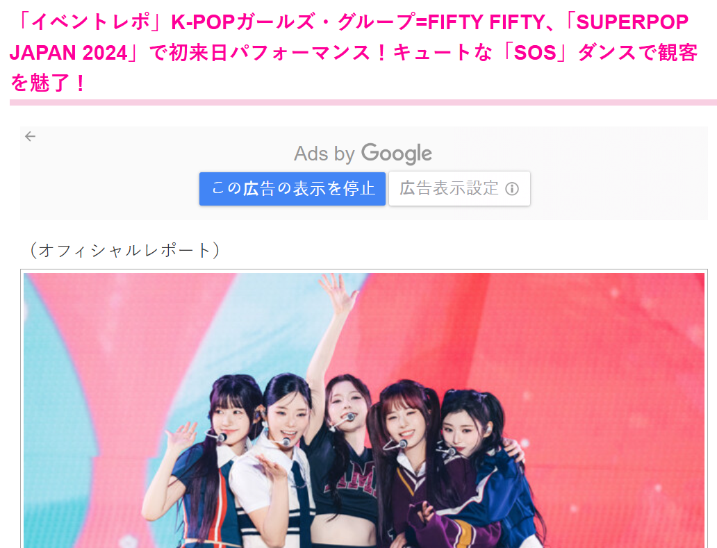 피프티 피프티(FIFTY FIFTY)의 역사적인 첫 해외 공연인 '슈퍼팝 재팬(SUPERPOP JAPAN)' 라이브 무대를 현장에서 지켜보고 그대로 실감있게 쓴 일본 언론매체의 기사가 있어 공유하고자 합니다.
