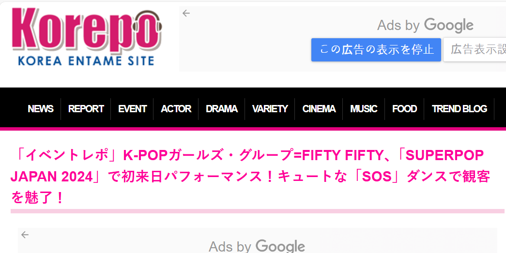 한국 대중연예 소식을 전문적으로 다루는 일본 매체 '코레포(KOREPO)'는 11일 'K팝 걸그룹 피프티 피프티가 '슈퍼팝 재팬 2024'에서 일본 첫 공연!'이라는 제목으로 '이벤트 리포트' 기사를 게재했습니다.