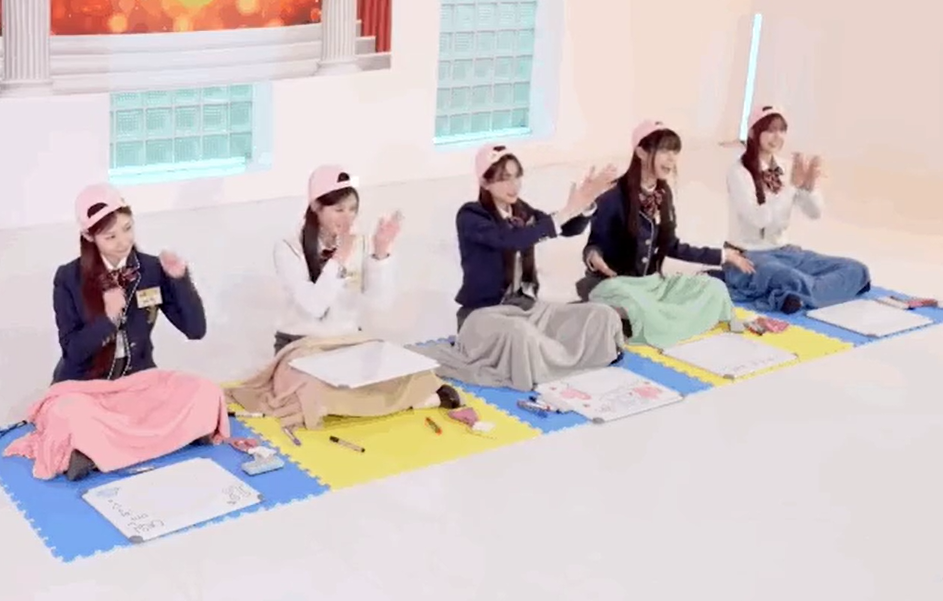 그런데 퀴즈를 풀기 위해 앉아있는 5명 멤버들은 각자 모자와 가슴에 숫자 명찰이 달려 있었습니다.