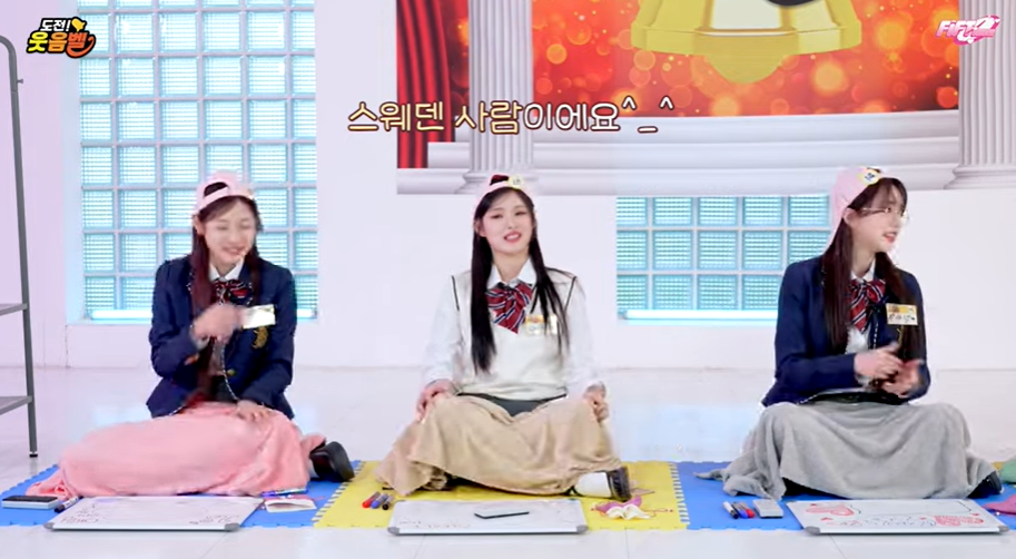 예원은 옆에 아테나가 있는데 도시 이름 퀴즈에서 나라 이름 '스웨덴'이라고 말해 웃음바다로 만들었습니다.
