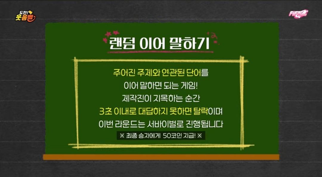 그 다음으로 '랜덤 이어 말하기'에서는 한식 이름, 겨울 스포츠 종목 등에 대한 퀴즈가 이어졌습니다.