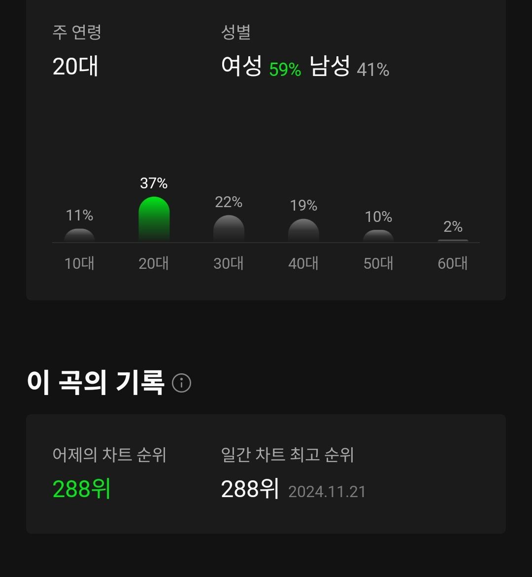 멜론에서 '그래비티' 음원이 22일 일간 차트 288위에 올라, 일간 최고 순위를 또 경신했습니다.