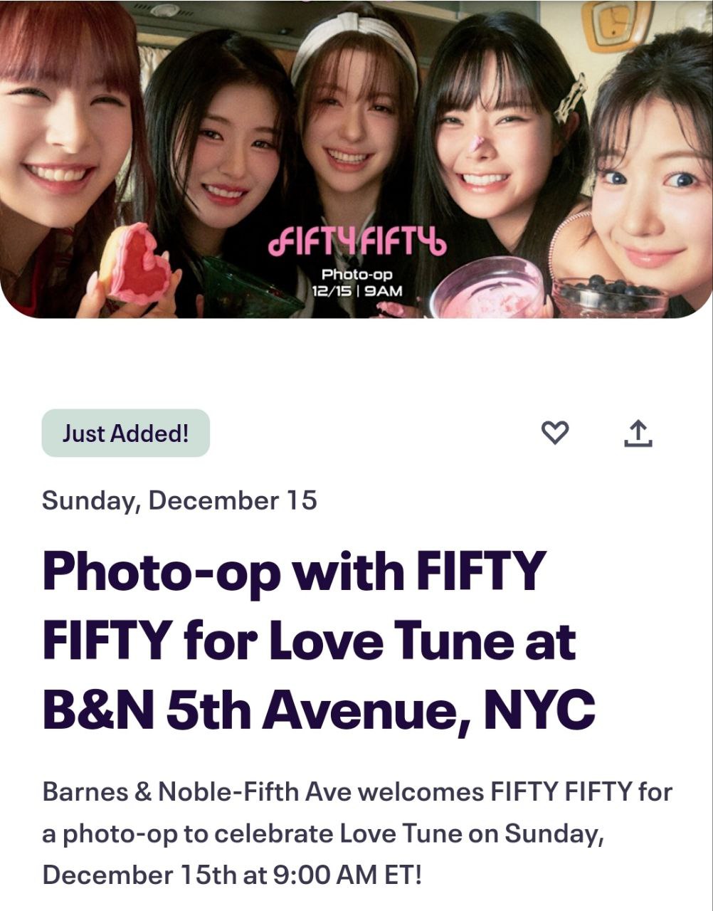 한편 반스 앤 노블(Barnes & Noble)은 12월 15일 뉴욕 행사에서 앨범 구매자 대상 포토 이벤트를 진행한다고 합니다.