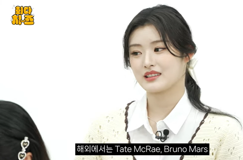 아테나는 에스파(aespa), 키스오브라이프(KISS OF LIFE), 해외에서는 테이트 맥레이(Tate McRae), 브루노 마스(Bruno Mars)를 좋아한다고 말했습니다.