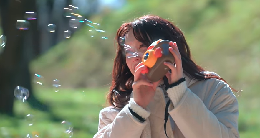 여기서 두 사람은 비눗방울 총으로 비눗방울을 날리는 모습도 선보였습니다.