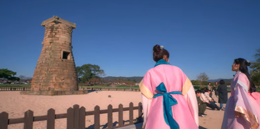 그리고 문샤넬은 아테나에게 첨성대 핑크뮬리 밭을 보여주고 신라시대 공주 의상을 입고 거닐었습니다.