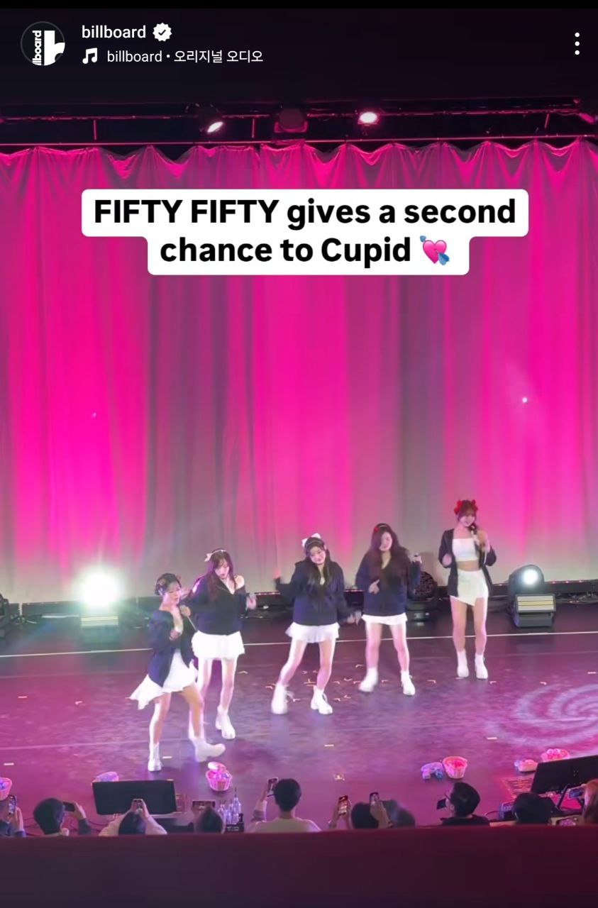 빌보드는 공식 인스타그램 계정은 피프티 피프티의 뉴욕 콘서트 현장의 '뉴 큐피드(New Cupid)' 라이브 무대를 영상 릴스로 공개해 의미를 더했습니다.