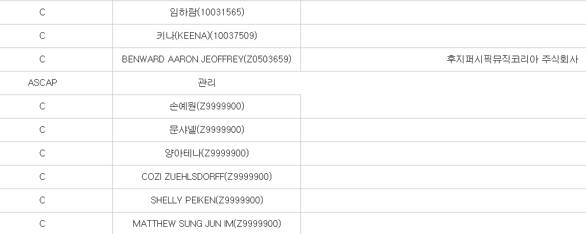 그리고 문샤넬, 손예원, 양아테나는 이번에 처음 저작권자에 등록됐기 때문에 협회 비관리 대상이었습니다.
