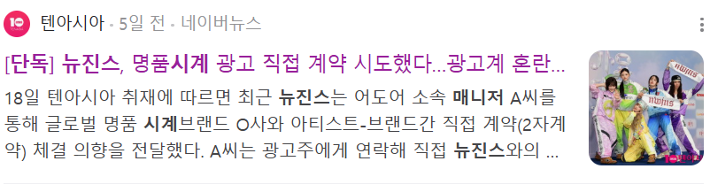 앞서 한 언론은 어도어 소속 매니저를 통해 해당 시계 브랜드와 진행하는 아티스트 그리고 브랜드간 직접 계약 체결 의향을 전달했다고 보도했습니다.