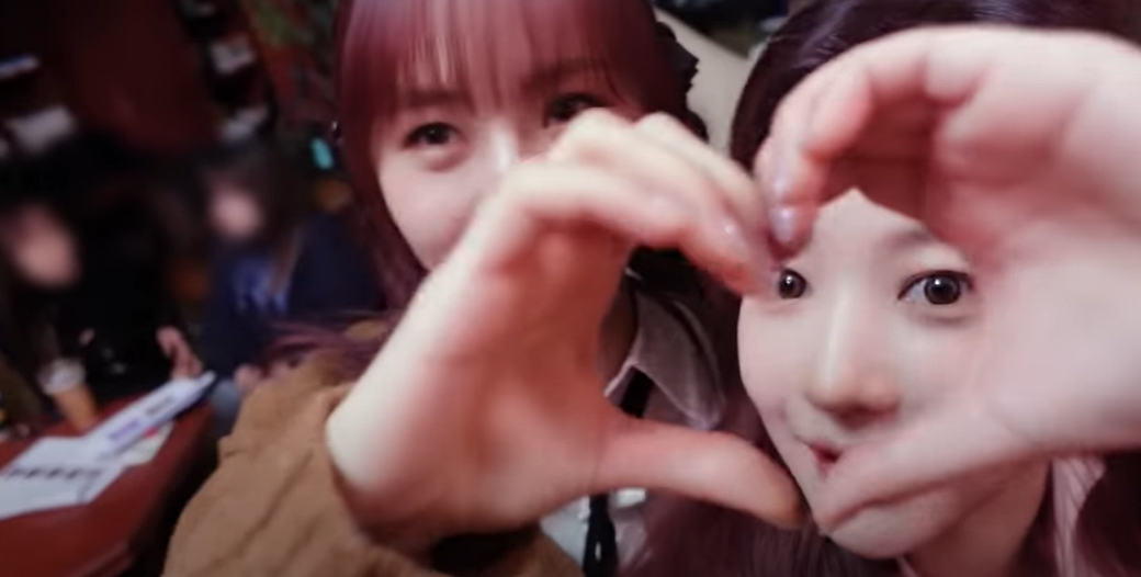 예원은 사랑스러운 손하트를 보여주었습니다.