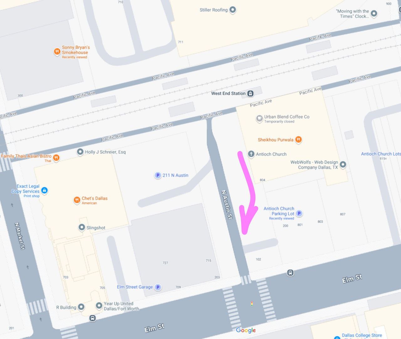 구체적 촬영장소는 엘름 스트리트 안디옥 교회 주차장(Antioch Church Parking Lot) 앞 입니다.