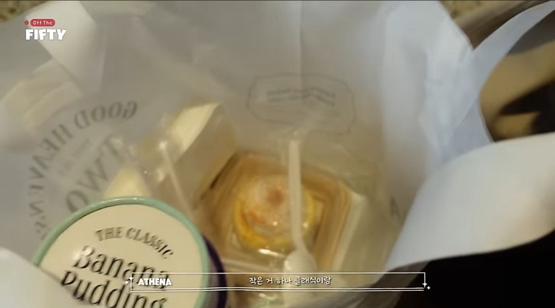예원과 아테나는 매그놀리아 베이커리에서 바나나 푸딩, 치즈 케이크 등을 샀습니다.