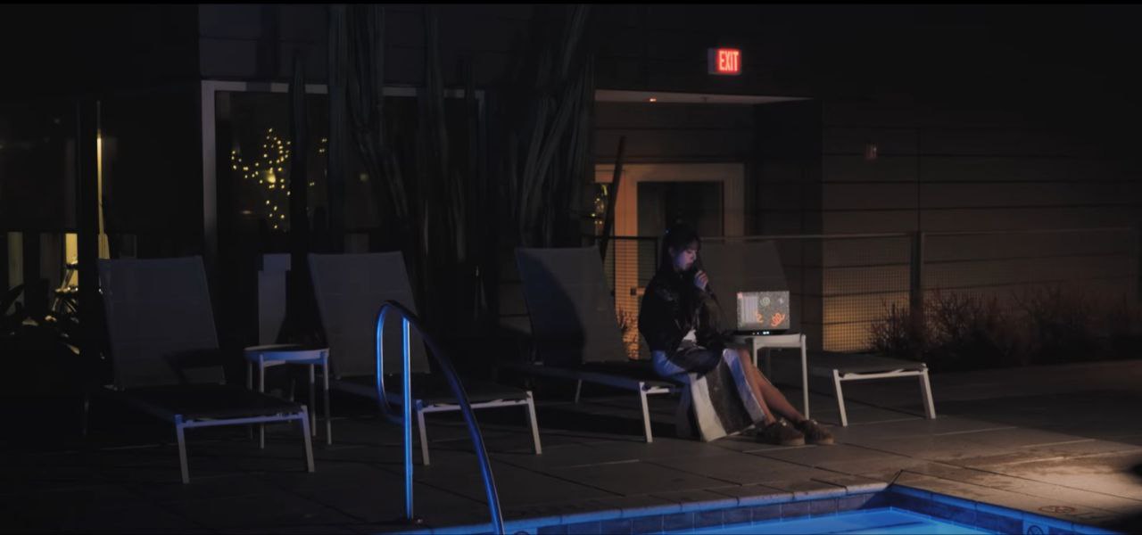 호텔 내 야외 수영장이 있는 장소에서 노래했습니다.