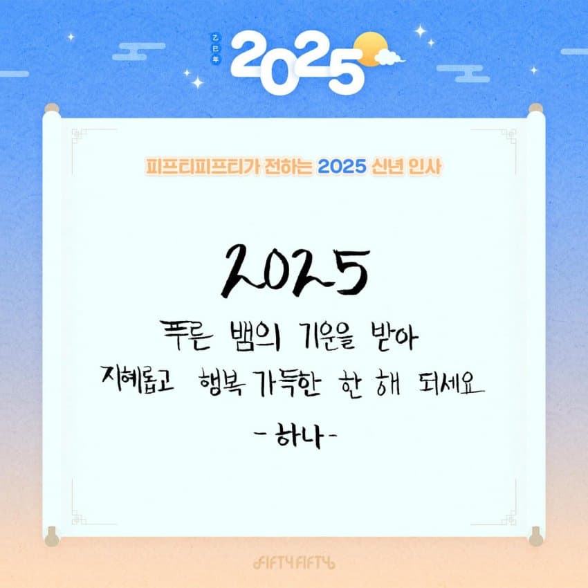 하나(HANA)는 "2025 푸른 뱀의 기운을 받아 지혜롭고 행복 가득한 한 해 되세요."라고 인사했습니다.