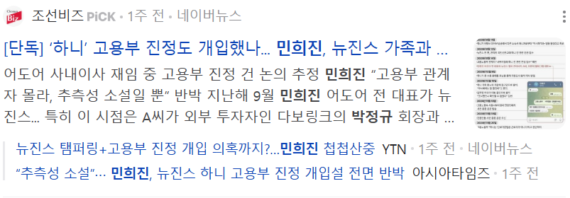 두번째 여전히 어른거리는 민희진의 그림자입니다.