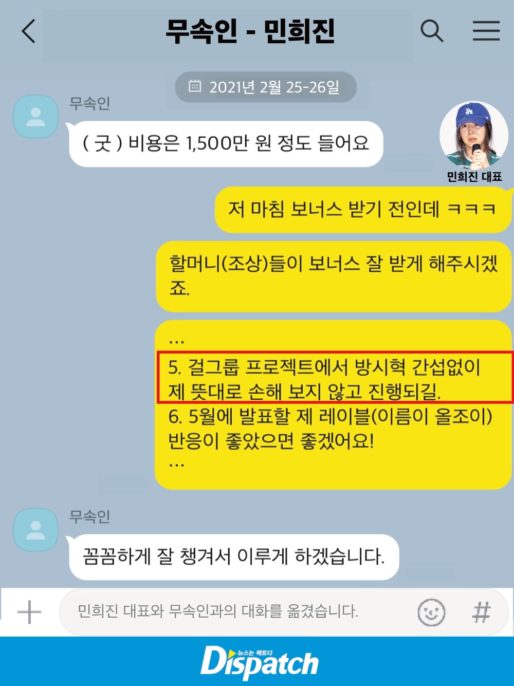 민희진은 거짓말을 했다고 디스패치가 폭로했습니다.