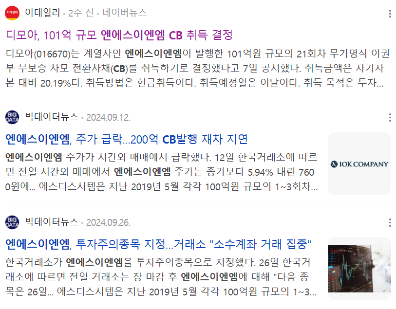 작년 8월 엔에스이엔엠으로 사명을 바꾸고 사업 다각화에 나섰지만, 리스크가 점점 커지고 있다고 전했습니다.