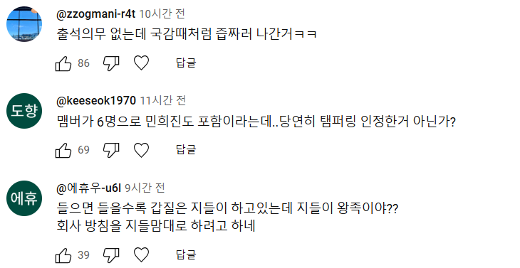 "멤버가 6명으로 민희진도 포함이라는데...당연히 탬퍼링 인정한 거 아닌가?"