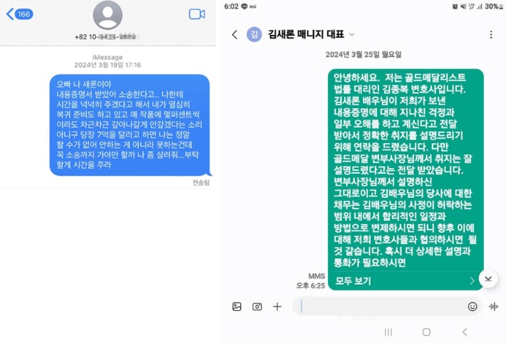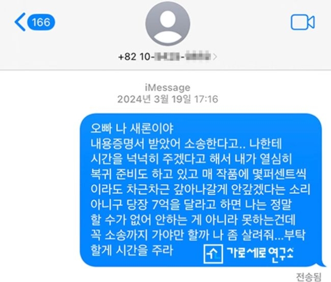 김새론은 문자에서 "오빠 나 새론이야. 내용증명서 받았어. 당장 7억을 달라고 하면 나는 정말 할 수가 없어. 안하는 게 아니라 못하는 건데 꼭 소송까지 가야만 할까. 나 좀 살려줘. 부탁할 게. 시간을 주라"라고 김수현에게 호소했습니다.