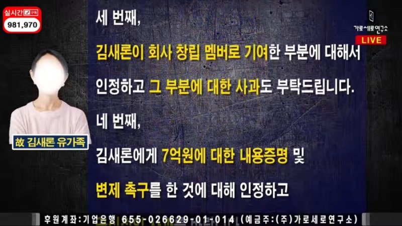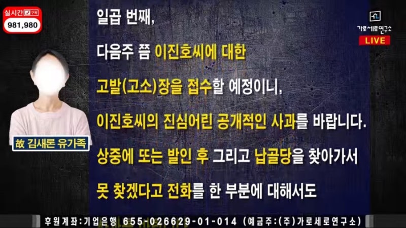 김새론 유족은 15일 가세연 라이브 방송을 통해 김수현과 소속사에 공식 사과를 요구했습니다.