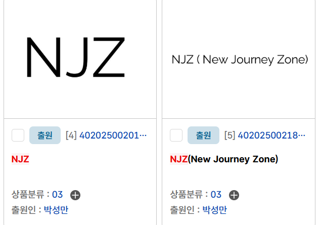 지식재산정보 검색 키프리스(KIPRIS)에서 확인해보면 NJZ 상표권은 현재 출원 중으로 심사 중에 있습니다.
