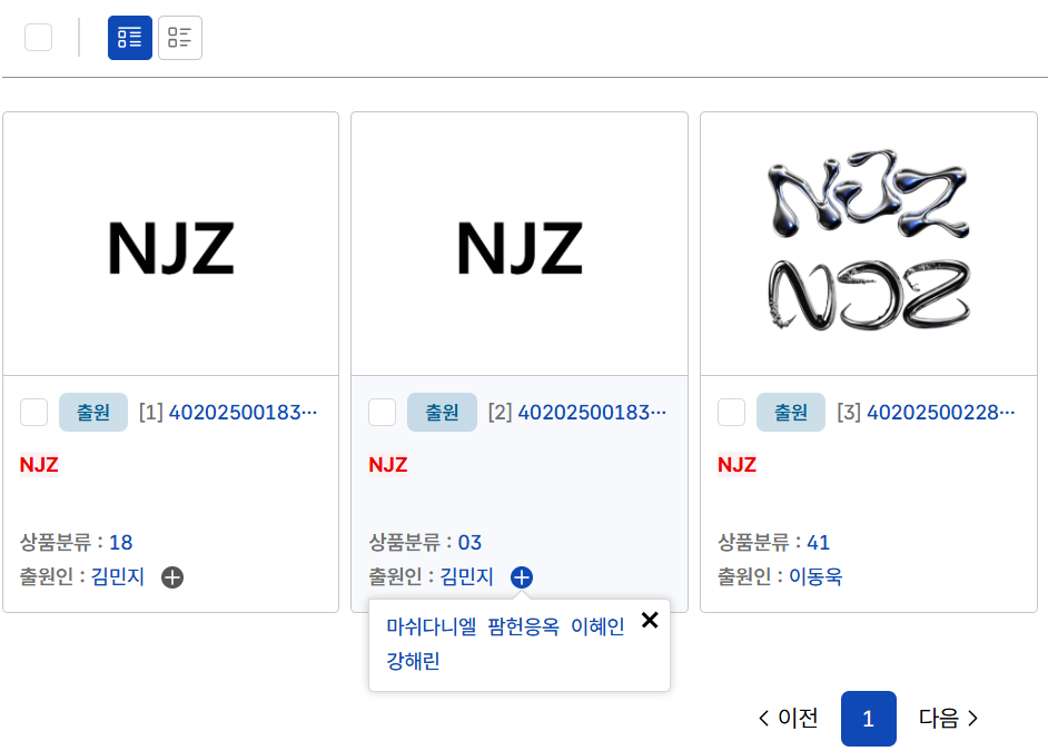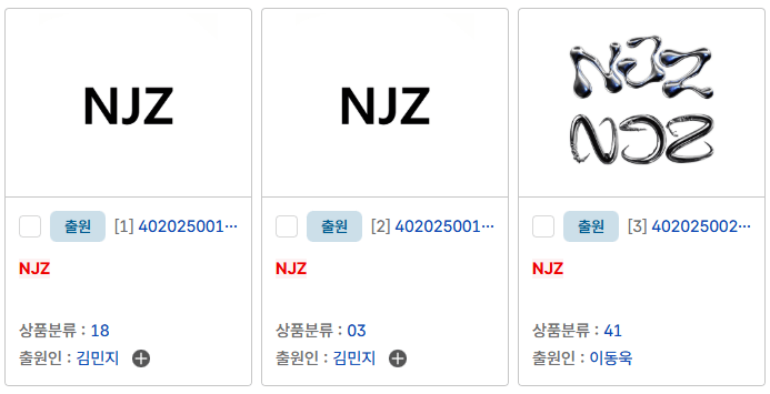 그리고 NJZ 로고 디자인도 출원됐는데 2월 14일 출원했고 출원인은 이동욱이었습니다.