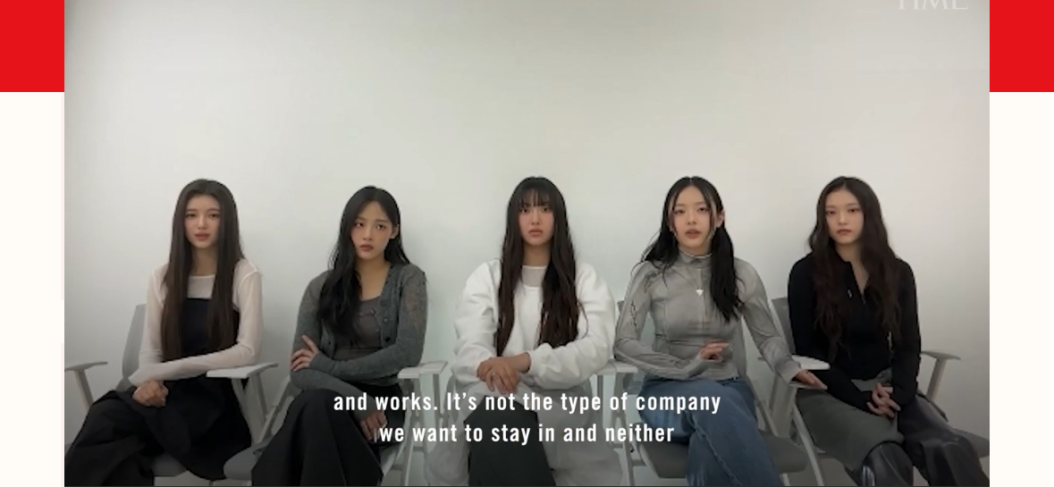 멤버들은 하이브(HYBE)를 겨냥해 "우리가 비합리적이거나 과도한 요구를 하는 게 아니다"라고 말했으며 다니엘은 인터뷰 도중 "같은 상황을 겪을 이들을 생각하면 가슴이 아프다"며 눈물을 흘리기도 했습니다.