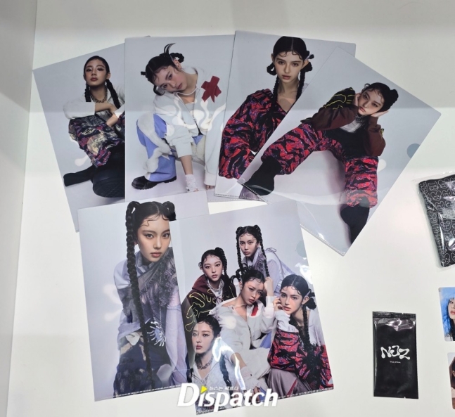 공개된 사진엔 뉴진스가 아닌 'NJZ 데뷔 축하해'라고 적힌 광고 앞에서 포즈를 취한 멤버들의 모습이 담겼습니다.