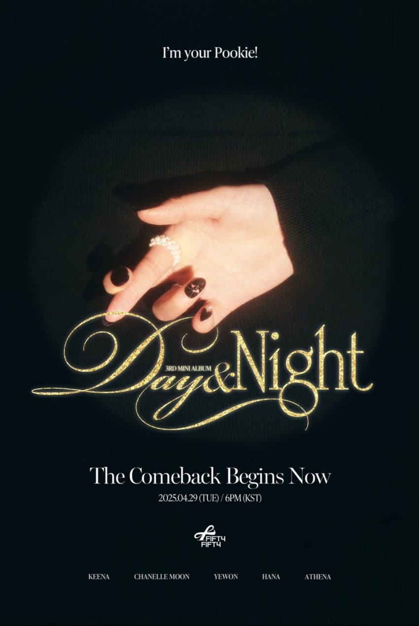 특히 피프티피프티는 오는 4월 29일 화요일 오후 6시, 세번째 미니 앨범 '데이 앤 나이트(Day & Night)'를 공개할 예정이라면서 공식 컴백 포스터를 공개했습니다.