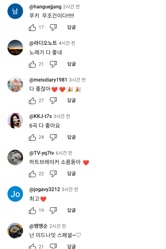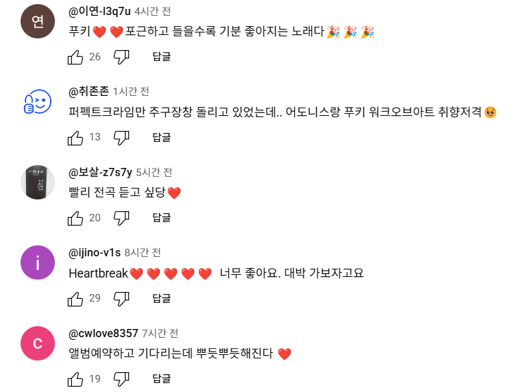 "푸키❤❤포근하고 들을수록 기분 좋아지는 노래다🎉🎉🎉"