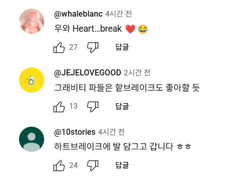 "하트브레이크가 제가 가장 좋아할 것 같아요. ❤️"