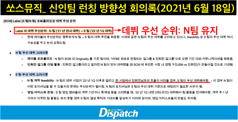 그리고 민희진은 N팀 평가를 차일피일 미루면서 결국 N팀 데뷔가 늦어지고 자신이 N팀을 가져오게 됐습니다.