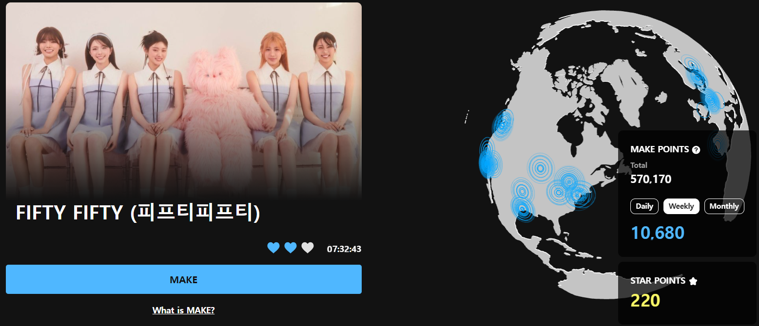 MMT는 "가까운 도시에서 피프티피프티를 보고싶으신가요? MMT로 가서 MAKE 하세요"라고 공지했습니다.