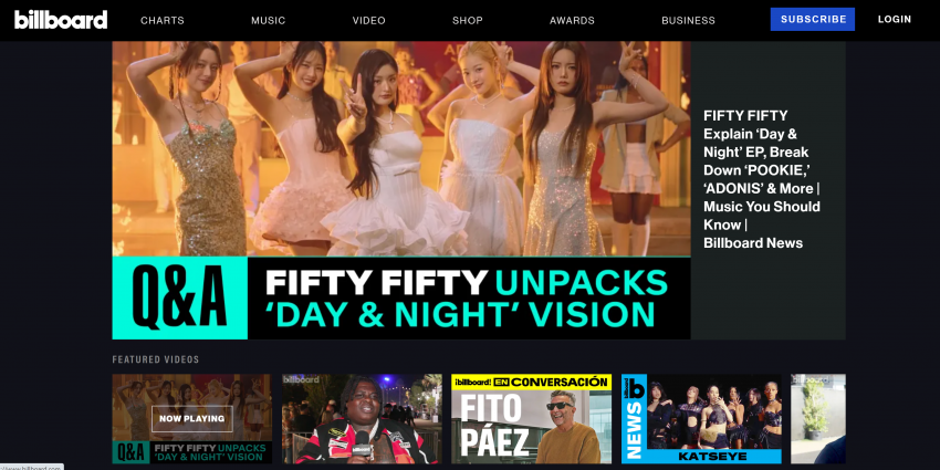 빌보드 사이트 메인에 피프티피프티 '데이 앤 나잇(Day & Night)' 앨범 발매 소식이 실렸습니다.