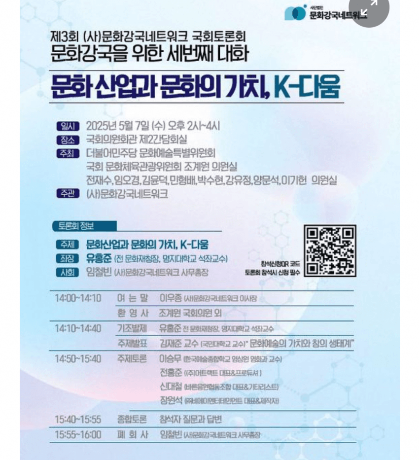 전홍준 어트랙트 대표는 7일 오후 2시에 국회의원회관에서 개최되는 '문화산업과 문화의 가치, K다움' 토론회에 유홍준 전 문화부장관, 전설의 기타리스트 신대철 등과 함꼐 참석할 예정입니다.