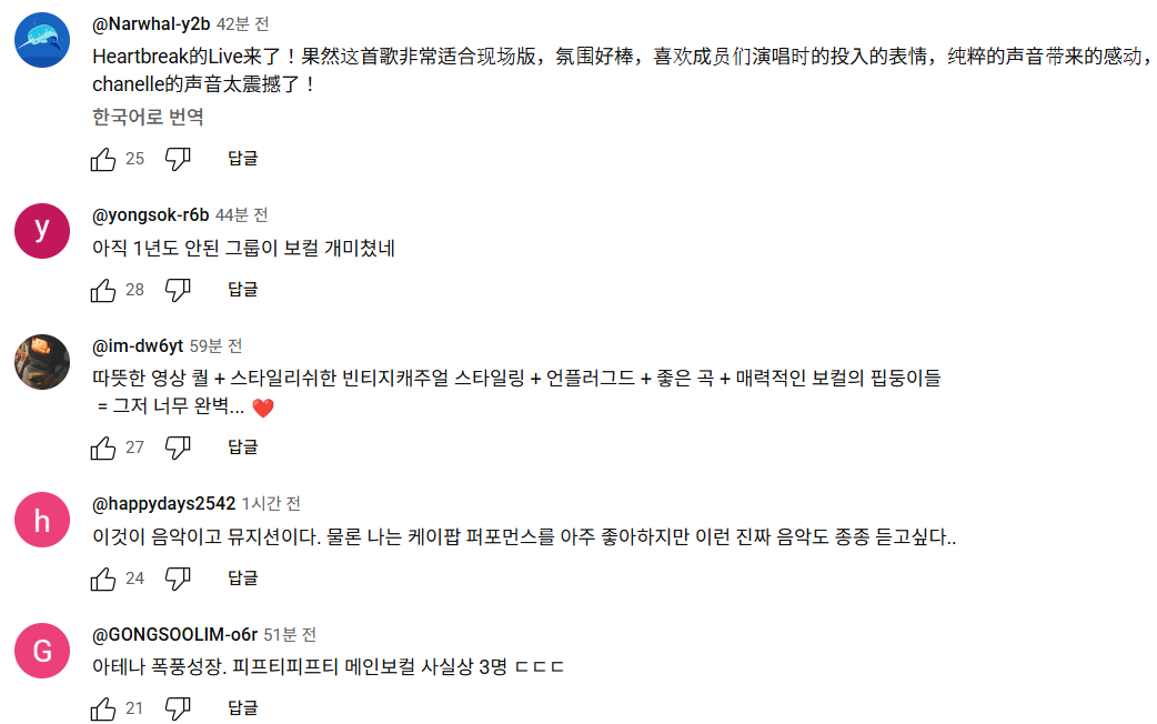 "이것이 음악이고 뮤지션이다. 물론 나는 케이팝 퍼포먼스를 아주 좋아하지만 이런 진짜 음악도 종종 듣고싶다.."