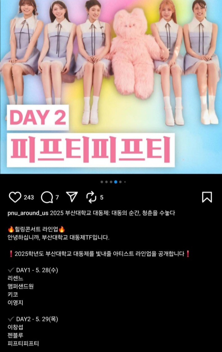 피프티피프티는 29일 목요일에도 부산대학교 축제에서 라이브 공연을 합니다.