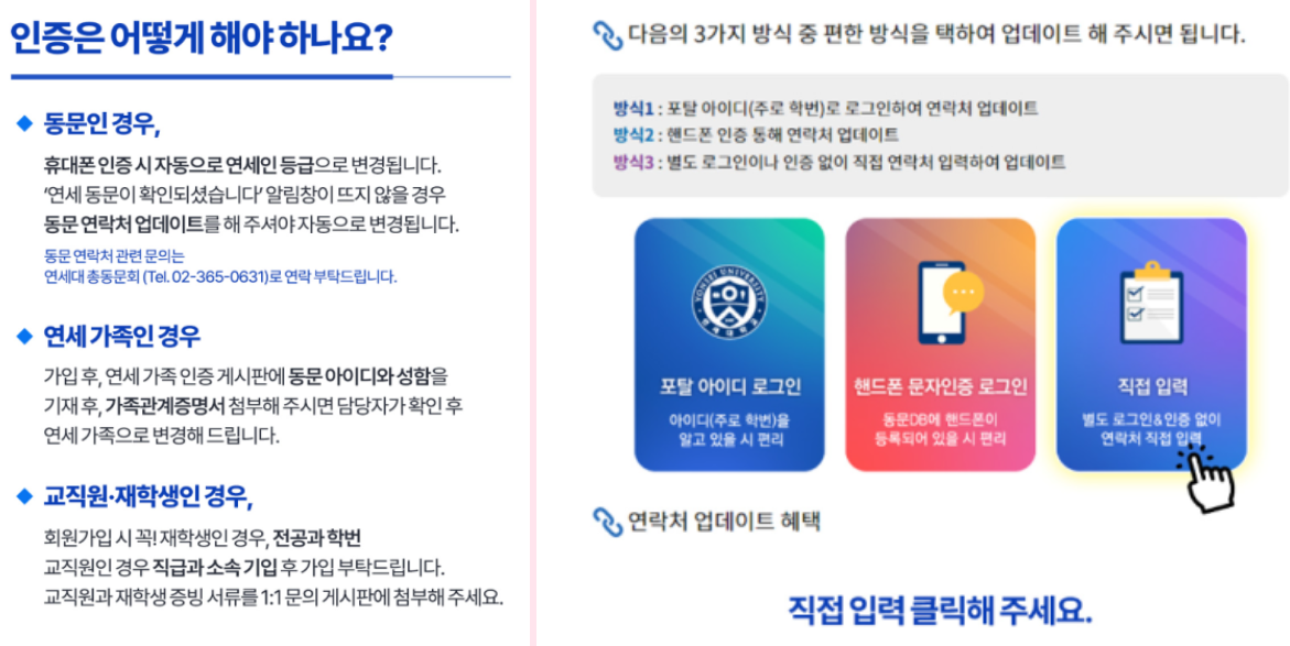 연세대 동문인 경우 가입시 휴대폰 인증만 하면 바로 연세인 등급으로 변경되어 티켓 구매가 가능합니다!