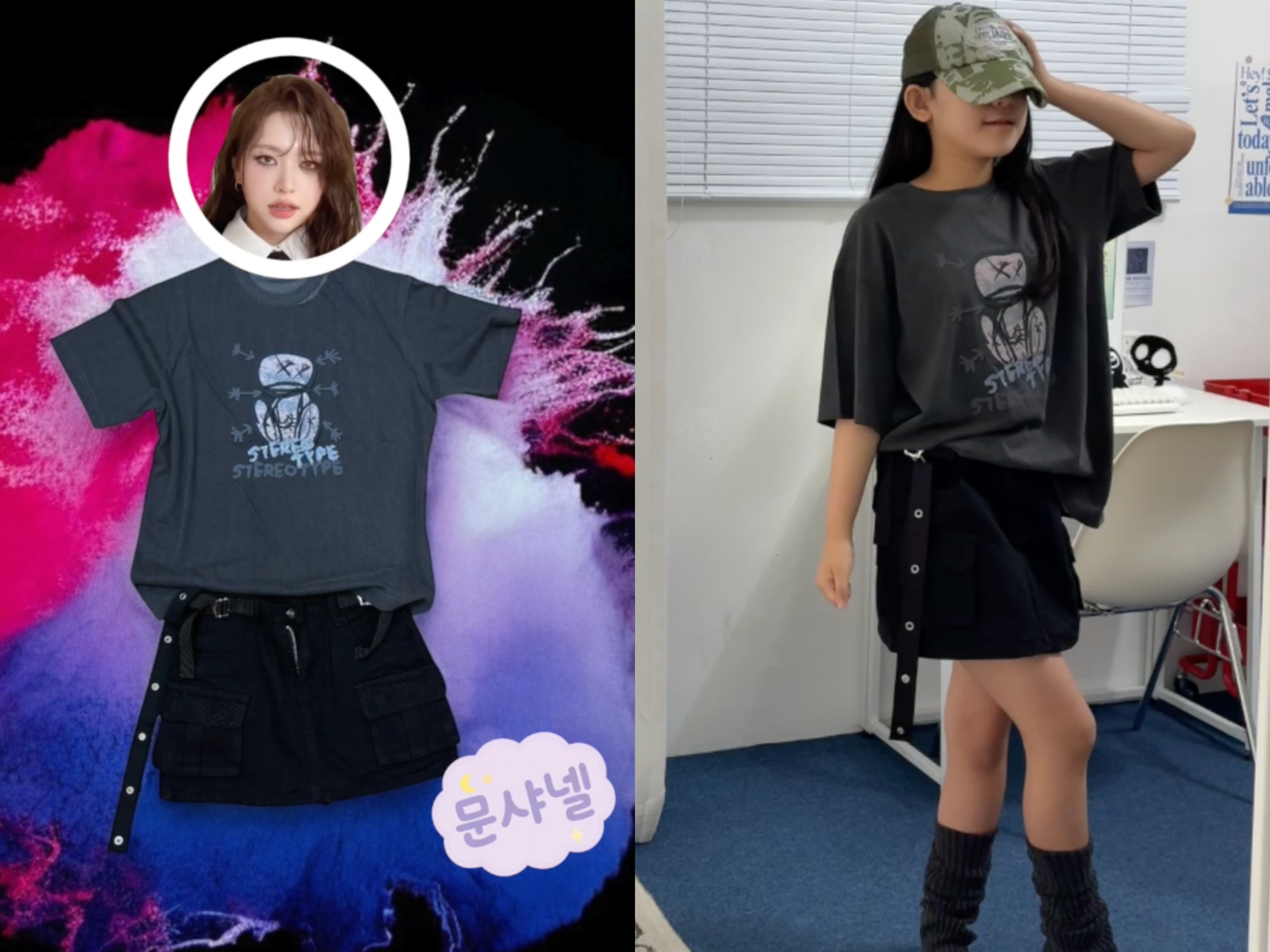 원래는 연청 치마에 예쁜 티셔츠로 여성스러운 매력이 강조된 스타일링이었습니다.