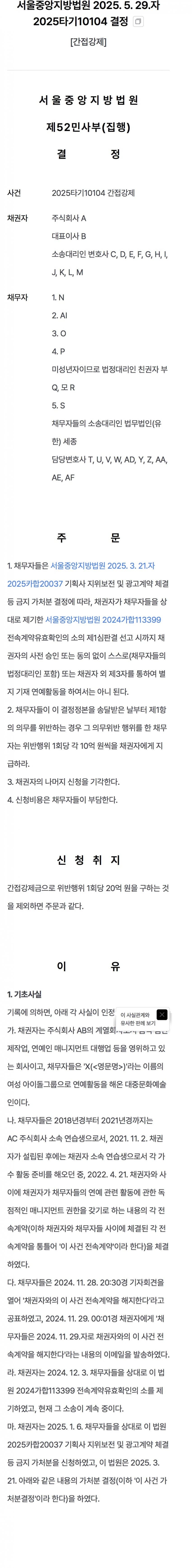재판부는 "가처분 결정에서 정한 의무를 위반한 것으로 향후에도 의무 위반 가능성이 있다"고 판단한 것입니다.