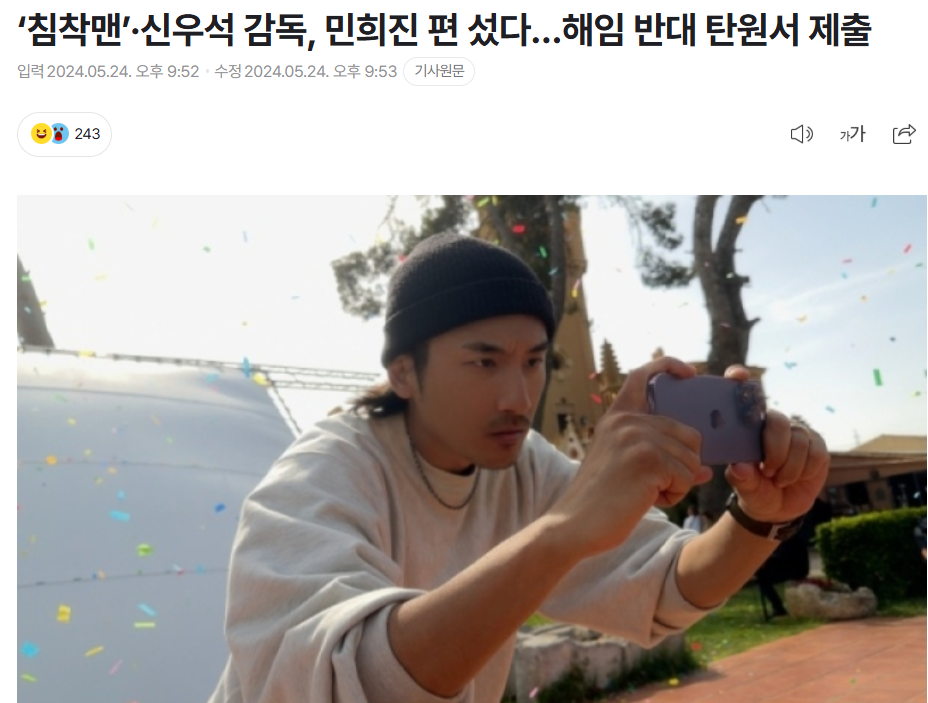 민희진에 대한 해임 반대 탄원서를 낸 사실이 알려지며 대중의 입방아에 오르내린 것입니다.